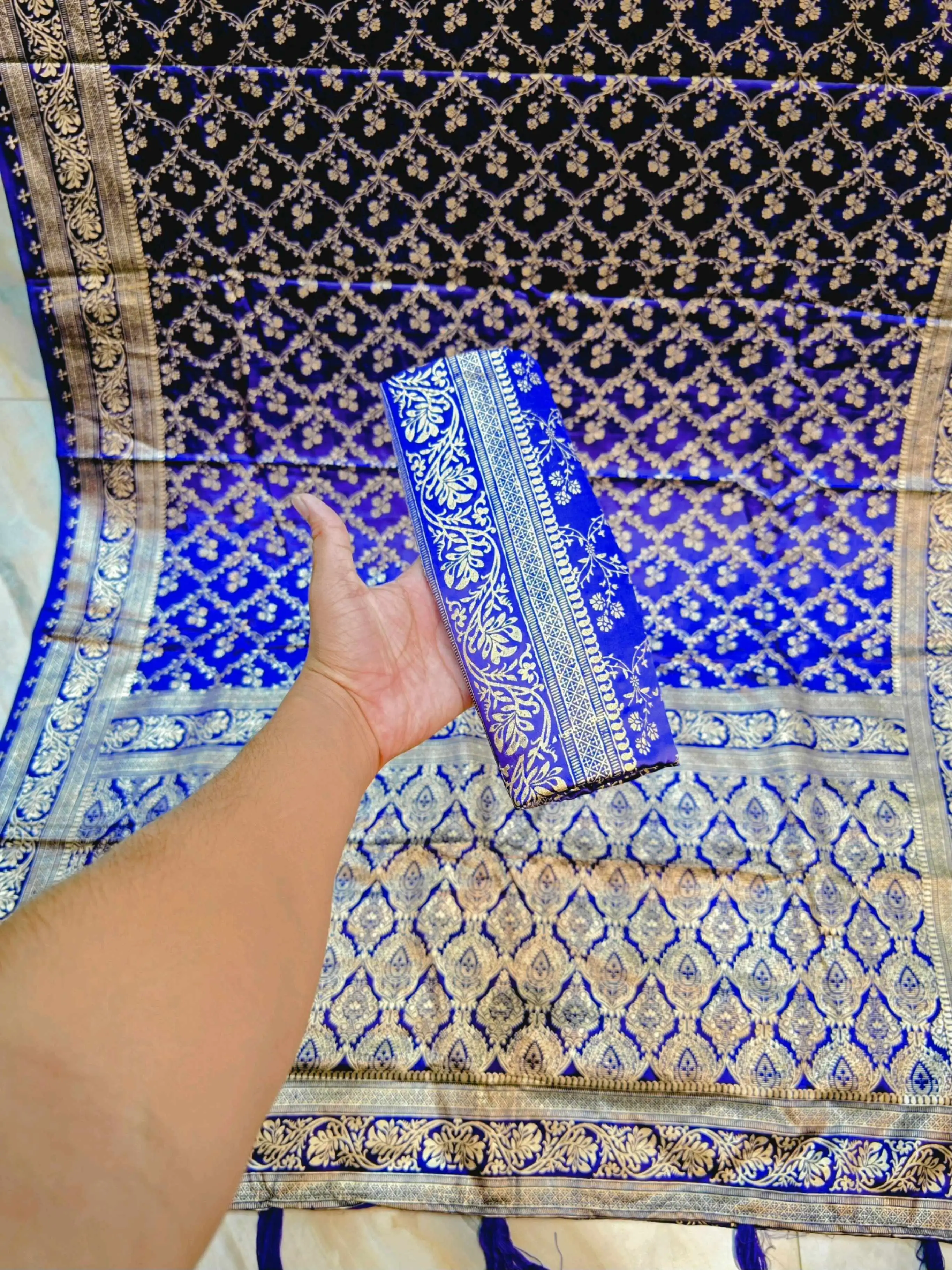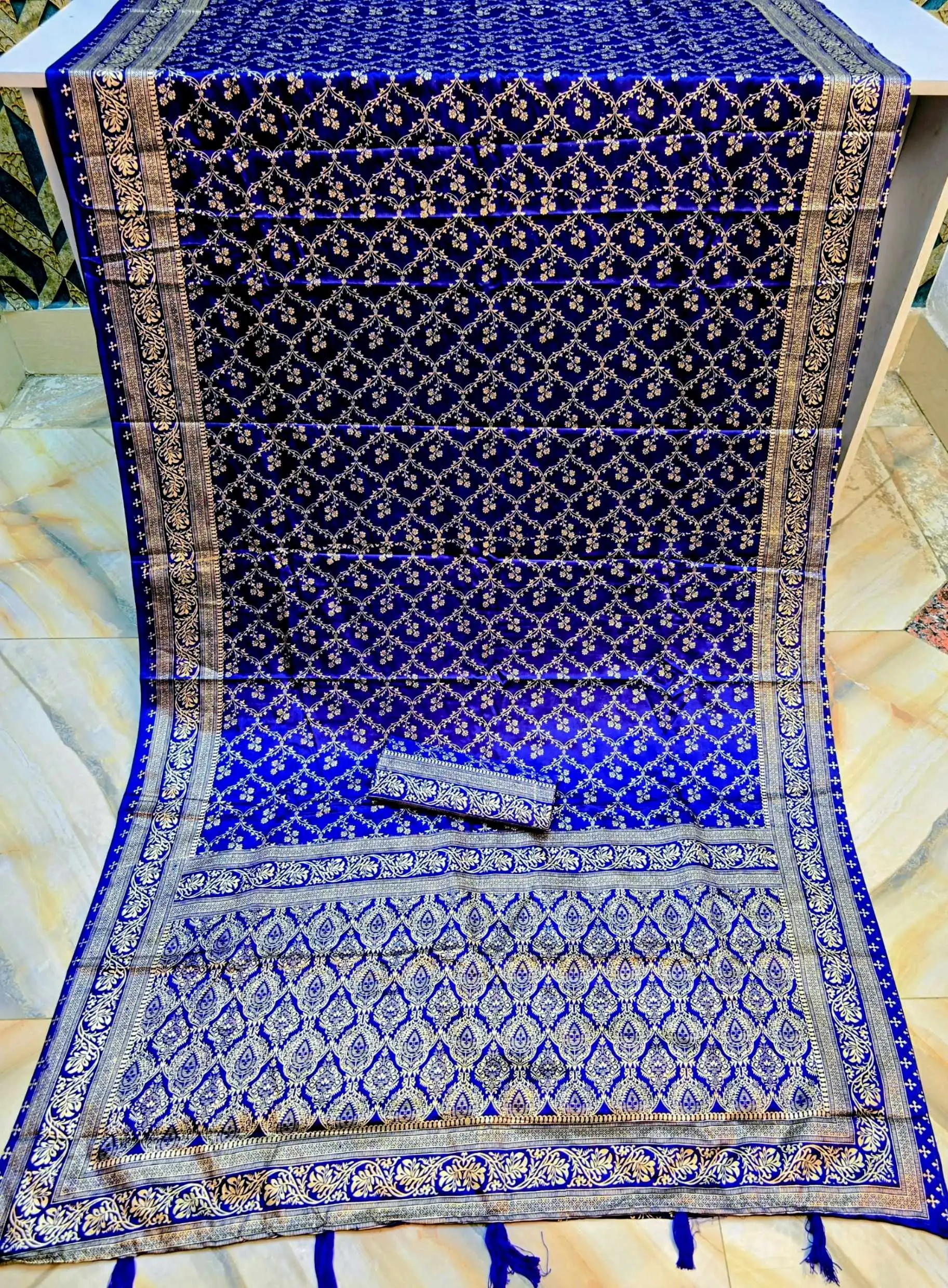 অরিজিনাল বেনারসি সিল্ক শাড়ি + ম্যাচিং ব্লাউজ পিস