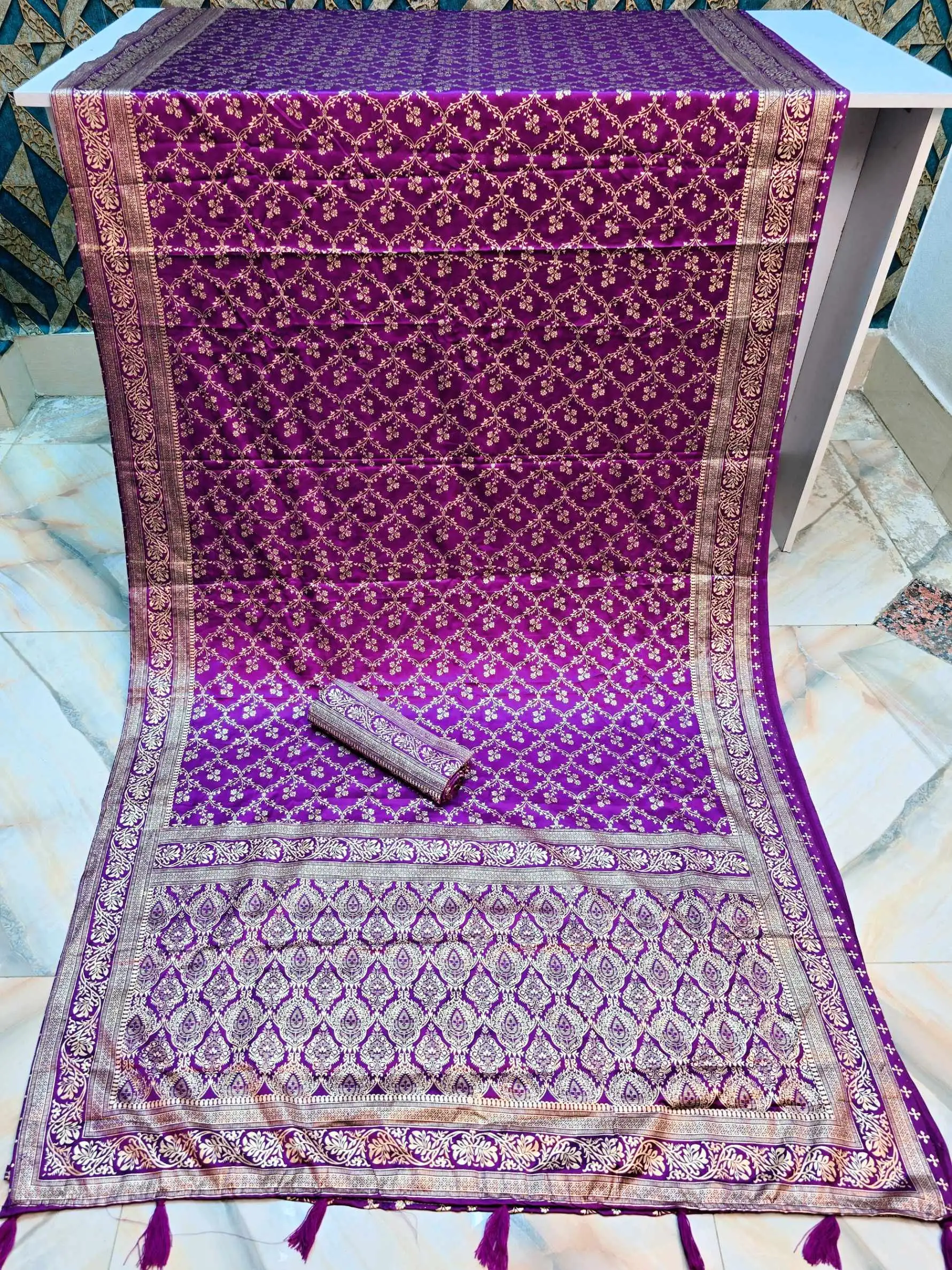 অরিজিনাল বেনারসি সিল্ক শাড়ি + ম্যাচিং ব্লাউজ পিস