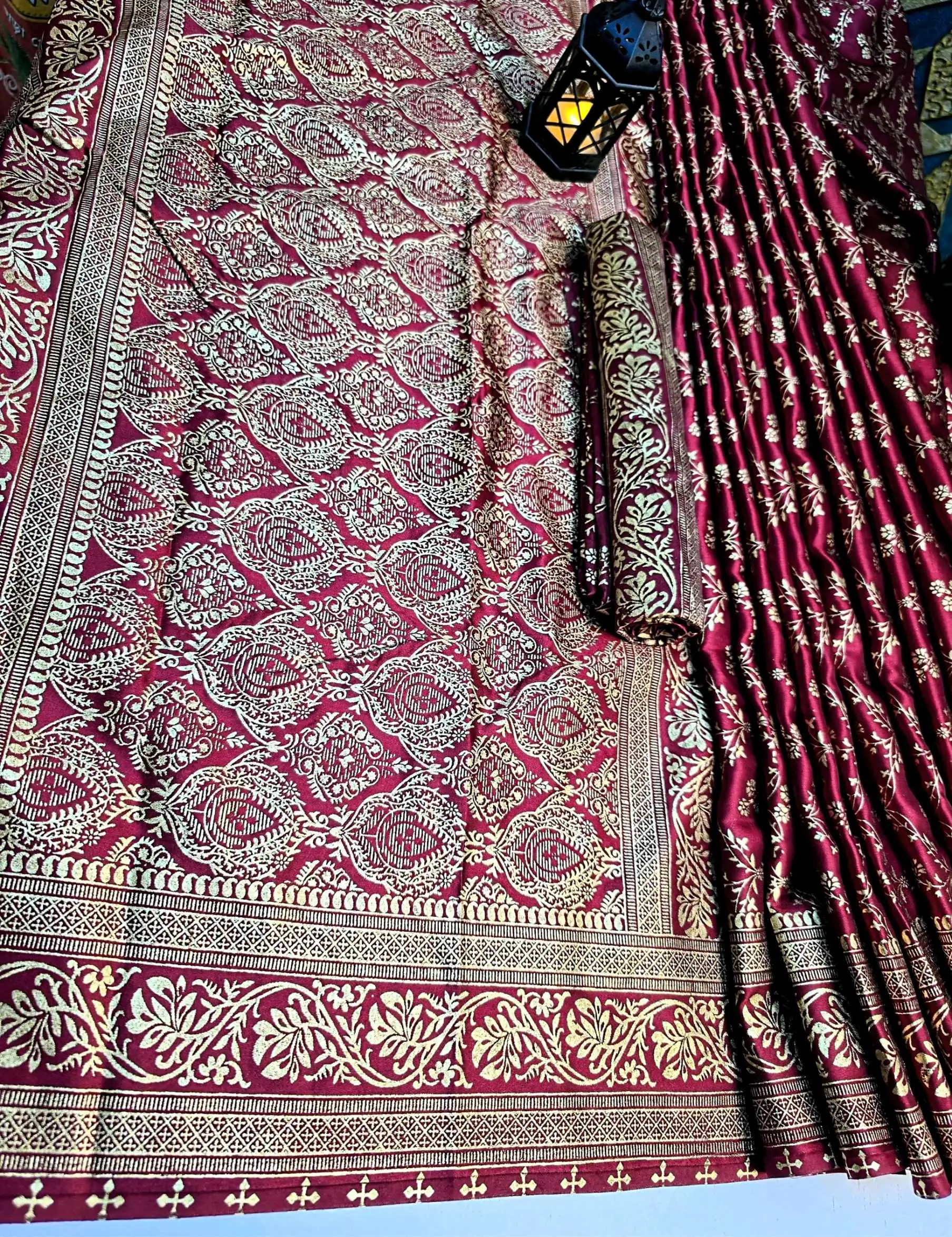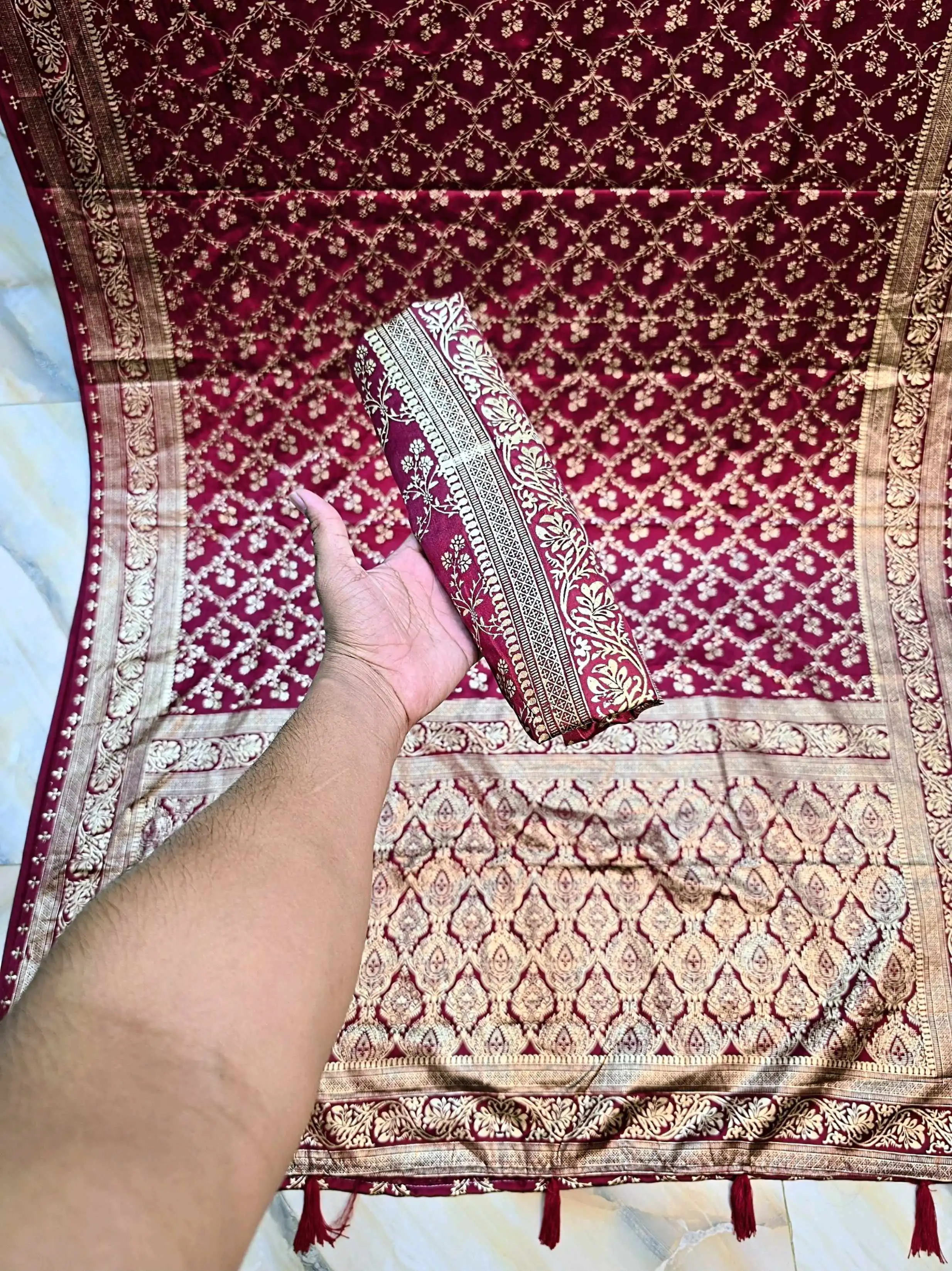 অরিজিনাল বেনারসি সিল্ক শাড়ি + ম্যাচিং ব্লাউজ পিস